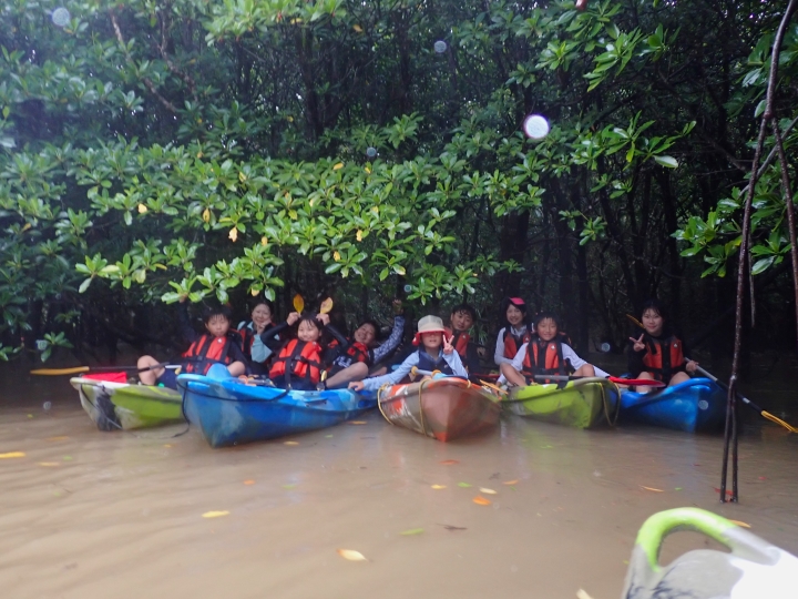 マングローブの木々も風や雨を完全に防げるわけではないので、風によってカヌーのコントロールが難しく感じる場面もあったと思いますが、皆さん頑張って漕いでくださいました(; ・`д・´)