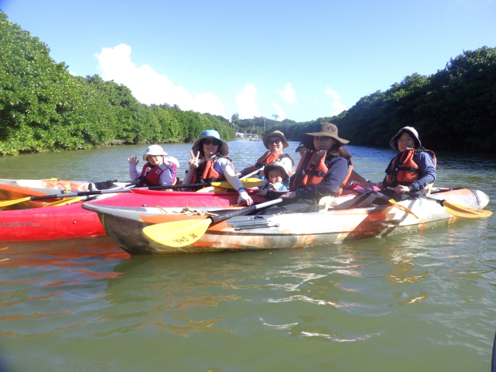 今日もてぃーだかんかん(太陽サンサン)で日なたにいると暑さを感じるような天気でしたが、皆さんと思いっきりカヌーを漕いでいきました!