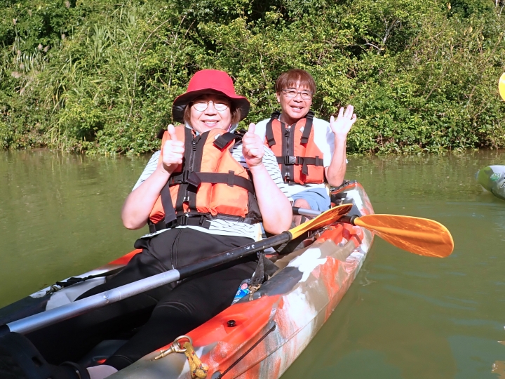 ご参加いただいた皆様と「ゆんたく(お喋り)」しながらカヌーを漕いでいきました!